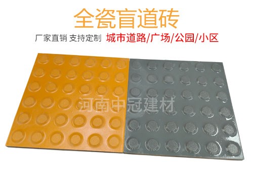 *尺寸優勢:中冠全瓷盲道磚規格多,種類全,尺寸誤差小整齊一致,簡約美觀,在施工中可降低施工成本,節約施工時間;如需特殊規格,還可定制生產。